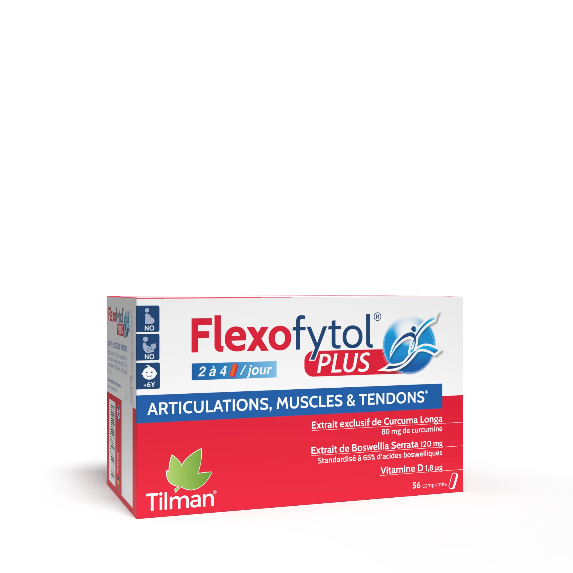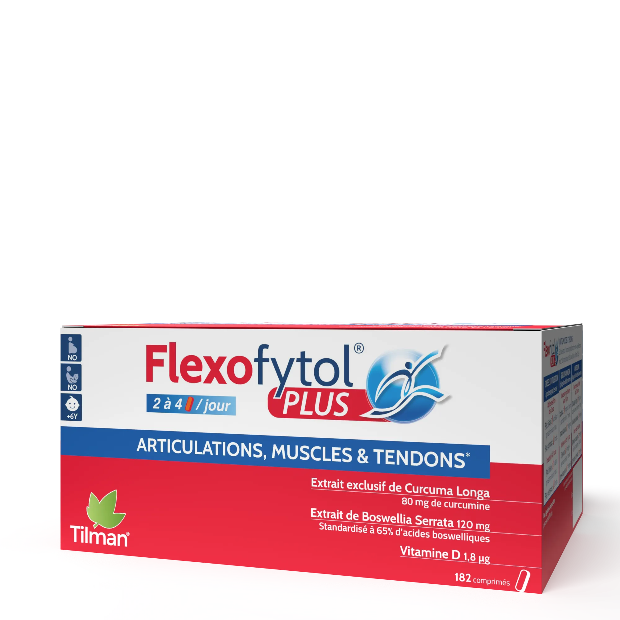4 L’extrait de curcuma contribue au maintien de la flexibilité et de la souplesse des articulations et des tendons. L’extrait de boswellia contribue à la souplesse des articulations. La vitamine D contribue au maintien d’une fonction musculaire normale